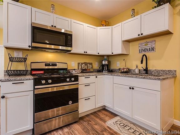 Fabulous home renovation! Great deal, house appraised at $200,000 just a few months ago from a previous contract. Seller has given attention to detail with this home. You will love this reworked shotgun style home. Upon entering you are greeted by tall ceilings, new LED recessed lighting, and vibrant colors. Throughout the home there is new LVP flooring, a hallway leading to the kitchen and back of the home. A Primary Suite has been added for privacy and comfort. You have a total of 3 bedrooms and 2 full bathrooms. The Primary Suite has it's own Primary Bathroom. Both bathrooms have Porcelain tiles, bluetooth 3 in 1 speaker/lights/vents, all new vanities, lighting, toilets, and mirrors. Hallway bathroom has a standup shower with a recessed box shelf. Primary Bathroom has a full tub/shower combo. As you continue to the kitchen you will find a spacious area for gathering and entertaining. Seller has completely replaced the kitchen and installed all new cabinets, granite counter tops, rubbed bronze hardware, new sink, new faucet, and new appliances. Just off of the kitchen the home was expanded to include great space for dining. Exterior of the home upgrades include new front steps , all new vinyl siding, new roof, landscaping, side walk pavers, and off street parking! Seller just had blown in insulation installed in the attic (Feb 2024). A spacious fenced in back yard completes everything you are looking for in a Downtown New Albany home.