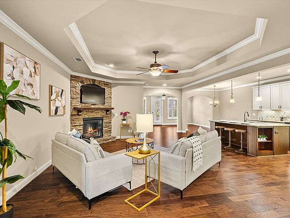 This beautiful all-brick home offers the perfect blend of comfort and style with its move-in ready condition and low-maintenance design. Inside, you'll find charming plantation shutters throughout and a spacious, open layout ideal for entertaining. The cozy living area features a gas fireplace and surround sound. The chef-inspired kitchen boasts stainless steel appliances, a walk-in pantry, stone backsplash, and stunning granite countertops. The expansive primary suite is a true retreat, offering a generous walk-in closet with built-ins for optimal organization. Enjoy peace of mind knowing the HOA is responsible for exterior maintenance, including lawncare, making upkeep effortless. Additional community amenities include a refreshing pool and a playground, perfect for both relaxation and recreation.  This home truly has it all—schedule a showing today!
