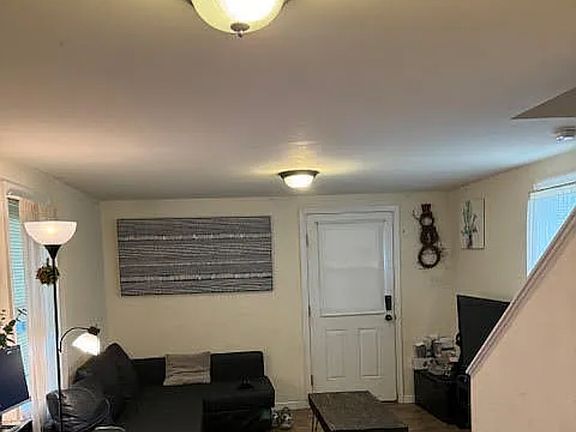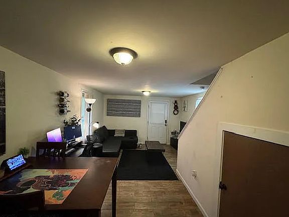 2-bedroom 1 bath apartment freshly painted in great location, featuring an open-concept living area with hardwood floor in unit laundry and parking space.