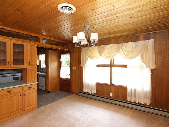 Spacious ranch home situated on 1.3 acres, wonderful and convenient location, features include 3 bedrooms and 2 full baths, large living room that's highlighted by a fireplace and picture window, adjoining dining area, pretty oak cabinet filled kitchen with plenty of counter space, master bedroom suite with hardwood floors and it's own private bath, finished lower level with huge family room and second fireplace, enclosed porch/breezeway, huge rear deck overlooking the countryside, attached 2 car garage with concrete driveway, low maintenance vinyl sided exterior and so much more, immediate possession, only $150,000. VIRTUAL TOUR