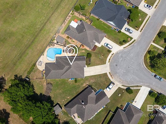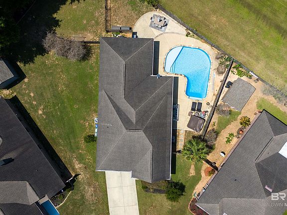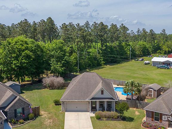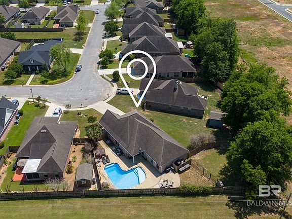 GOLD FORTIFIED 4BR/2BA Home with Pool – Minutes from Gulf Shores! Built by DSLD and situated in a cul-de-sac. Conveniently located between Foley and Gulf Shores—just nine miles from the beaches of Gulf Shores. Easy access to dining, the Tanger Outlet, OWA and the Beach Express. This open floor plan home is accented by crown molding in the living area and painted maple cabinetry throughout. The kitchen is a chef’s dream, offering granite countertops with under-mount sinks, stainless steel appliances, and plenty of prep and storage space. The cozy living room features a fireplace with a custom mantle and granite surround, creating the perfect ambiance for relaxing evenings. The primary suite includes double vanities, a separate shower, and a jetted garden tub. Step outside to your summer-ready backyard, featuring a INGROUND POOL with tanning ledge, hot tub, and a spacious concrete deck—perfect for grilling, lounging, and entertaining. Additional highlights include an extra-long driveway with ample parking. Buyer to verify all information during due diligence.