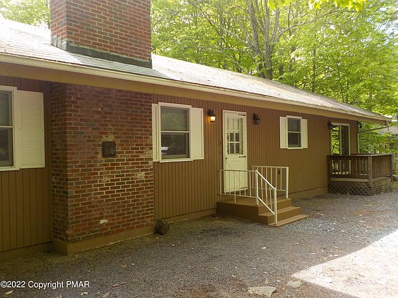 WOW! This is a large beautiful ranch home located in what the NY Times noted as one of the finest communities in Northeast Pa! Perfect for an AIR B&B! Many upgrades; kitchen, bathrooms, Master Bedroom's, Basement,. 2Fireplaces, Huge Deck. . Master Bedroom is huge with it's own Balcony. Bathrooms are modern, jacuzzi tub in Master Bathroom Modern appliances in kitchen, beautiful cabinetry and lighting. Basement fully finished with it's own Fireplace, can be used as Family room, Play room and/or extended easily into 2 more bedrooms! Deck measles over 400 sq, feet. All of this in amenity filled community with heated outdoor pool huge lake for fishing, boating and swimming. Tennis Courts, Gym with indoor pool. and it's own high end restaurant and club house It HAS EVERYTHING!