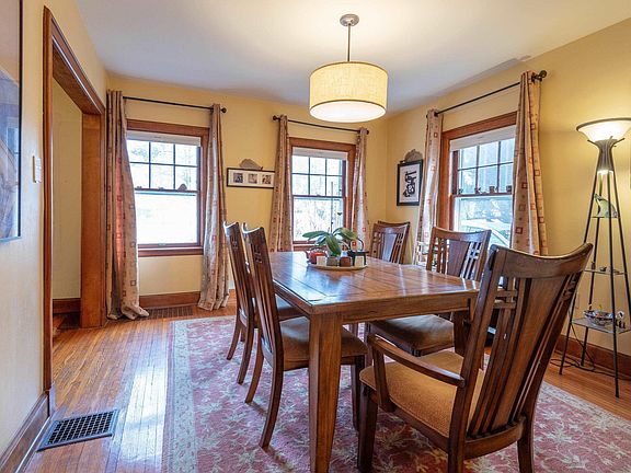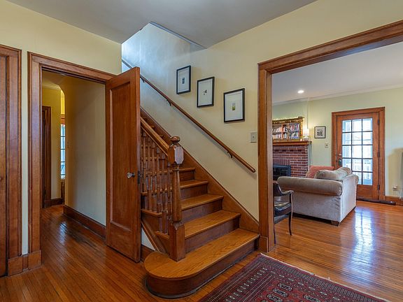 This stunning Elm Heights brick home has a marvelous location near Indiana University and wonderful access to the 40 acre Bryan Park. This traditional center entry home has had a wonderful renovation with an additional wing that accommodates a large entertaining kitchen with hand crafted custom cabinetry. Busy gourmets will love two sinks-one for you and one for a sous chef. This delightful gourmet kitchen with island and extensive built-ins and pantry storage has French doors that lead to the screened porch on the south side of the home. Great for seasonal dining! There is a large formal living room complete with wood burning fireplace, built-in bookcases and access to the side covered patio on the west side of the home. There is no shortage of covered outdoor dwelling space as the screened porch on the south side of the home has a wonderful view of the wooded backyard and the detached artist's studio. This tasteful home has four large upper level bedrooms, plus a small study on the upper level. The architectural addition of the home included the upper level primary suite with beautiful bath area and large primary bedroom with custom ceiling treatment and a dedicated upper level porch with impressive views. The secondary bedrooms are large in scale and the home has a pull down stair for a full third level insulated attic with open span. The fifth upper level room has great potential as a study or extra storage. The two upper level bathrooms were completely re-built and renovated with custom tile and tasteful fixing. Hardwoods continue on both the main and upper levels of the home. The lower level has a family room with built-in bookcases and access to the spacious lower level study with large south facing window and built-in bookcases. There is a utility room, ideal for storage and access to another storage room on the western side of the house. The addition to the home was completed in 2008 and the detached studio in 2018. The studio has its own heating and cooling mini-split system. There are solar panels on the home, a recently installed EV charging hookup and this home built in 1928 features Trane furnaces. Striking custom touches were designed into this home addition by Jim Rosenbarger and the house exhibits a great level of maintenance and care. Artists or writers will appreciate the detached studio at the rear of the property with bright window spaces that enhance this charming workspace.