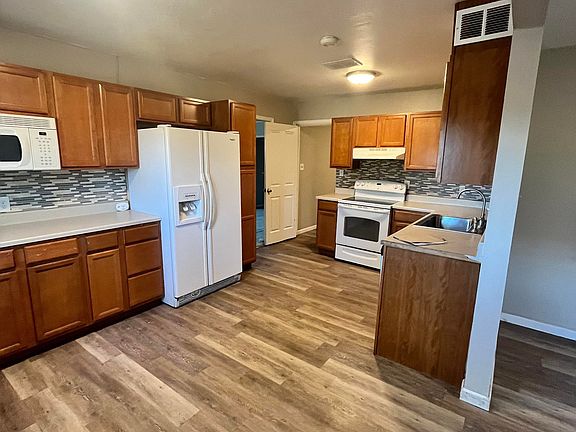 Garage!! Rare detached garage with alley access with 4 spaces off street parking / RV parking. Back on market!! Brick home, large master with sliding glass doors, study / office / 5th bedroom that leads onto back patio. Remodeled 5 years ago, laminate floors and separate laundry room. Custom Kitchen backsplash. New roof 2019. Garage door opener (no remote). Vinyl Windows.
