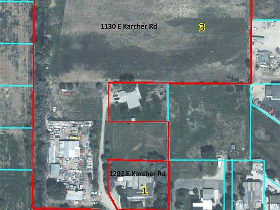 Large 10.25 acre industrial land parcel. Karcher road frontage. Utilities and 3-phase power available. Property includes a 3,800 SF home and 1,600 SF mason block building. Property includes 3 parcels - 1130, 1200, and 1202 E Karcher Road.
