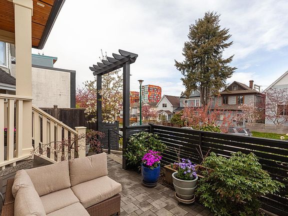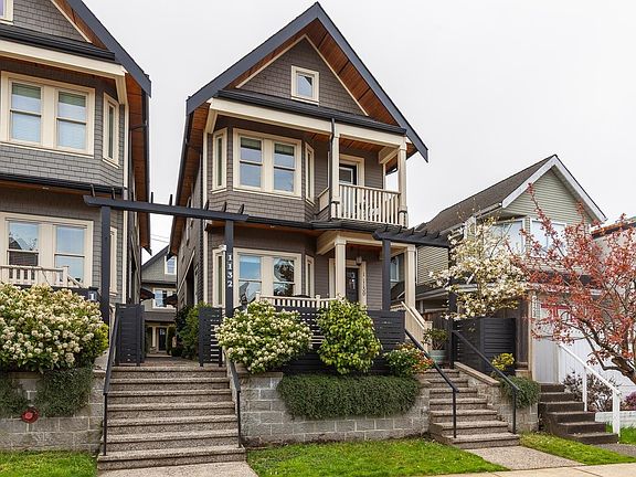 Beautiful 2015 character 1/2 duplex on a quiet, family oriented, tree-lined street in heritage Strathcona. Centrally located: 5 minutes from downtown, new St.Paul's hospital and Commercial Drive. Enter from your own walk-up, through private patio/garden into open concept main floor w/ 10-foot ceilings, wide-plank oak floors, elegant kitchen, and powder room. Upstairs 3 beds, 2 full baths, skylights and vaulted ceilings! Primary bedroom boasts a skylit ensuite and private balcony w/ spectacular city and mountain views. Radiant floor heating, Navien HW on demand, 2/5/10 Warranty, great storage (>500 sqft), 1 gated parking. Steps to parks, schools, cafes, trendy craft breweries, artisanal food stores, Adanac/Union bike route and transit. Open Houses: Thurs Apr 21 4:30-6:00, Sat/Sun Apr 23 2-4