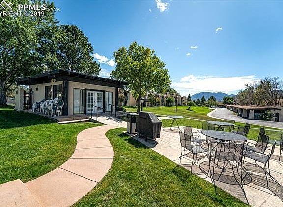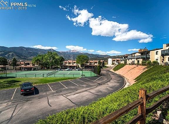 3 bedroom 2 bath 1 car garage condo situated at the top portion of the subdivision with AMAZING VIEWS of Pikes Peak, Garden of the Gods and surrounding area. Covered patio overlooks the tennis courts. HOA fees include exterior maintenance, insurance, lawn, trash, snow removal, tennis court, pool and 24 hour security guard at the gate. Large living room with fireplace, kitchen with breakfast bar. Garage is detached but just a few steps from the front door. Ground level unit.
