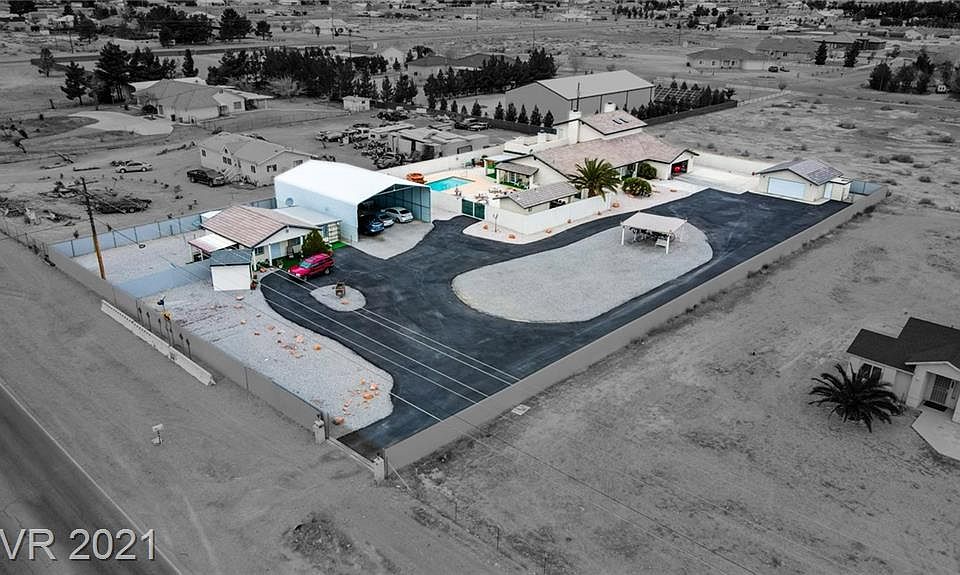 Entertainers dream! "Loft" style master bedroom suite upstairs and a large master style bedroom downstairs connected to a workout room and office (poss 3rd Bedroom). Tenant occupied 2 bedroom guest house with bath and kitchen completely remodeled. 3 car attached garage + 2 car detached garage for 5 total, as well as a large covered RV area with dual hook-ups and dump station. A large patio/pool area with it's own separate laundry/bathroom. Zoning "may include mixed".