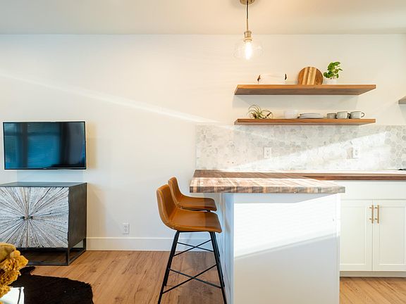 Furnished luxury studio w/garbage + water + hi-speed internet included in rent! All furnishings, linens, towels, kitchenware etc are included in rent. Completely remodeled studio apartment, taken down to the studs and rebuilt with new: insulation & soundproofing, drywall/texture, kitchen and bathroom cabinets, walnut wood counters, luxury vinyl plank flooring, tile surround in shower, marble tile backsplash in kitchen, solid walnut floating shelves, upgraded stainless appliances in kitchen (includes fridge), new water heater, new plumbing, electrical, insulation, LED lights on dimmers and more! Brand new mini-split heating/air conditioning unit provides year-round comfort and high energy efficiency. 2 generously sized closets with built-in clothes hanging racks and linen shelves, plus an abundance of cabinet space in the kitchen. If you are looking for a small, modern, affordable space close to downtown, look no further. 1-year lease preferred but open to 6 months. Owner pays water, garbage, and high speed internet. Tenant pays electric/sewer (approx $100 or less per month) and shared coin-op laundry No smoking. Parking space directly in front of unit. Shared laundry room in this small 12-unit complex. Please fill out Zillow application prior to touring the unit. Must have steady, verifiable income and credit score over 650 to apply
