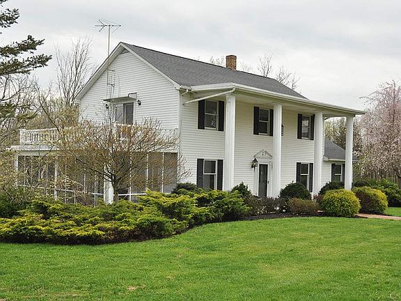 3BR/3.5BA Colonial home sitting on 96 acres echoed with log cabin w/ original date of about 1800. Private retreat featuring in-ground pool visible from master bedroom. Acres for horses/cattle. Included 4 stall barn, nice creek, natural spring captured by Field Stone well. Property has city water. Lots of counter space. Recreational areas in and around home. Walkout basement to concrete patio. Property offers beautiful views. Private entrance w/woods that provides privacy all around. Screened porch overlooking Koi Pond. Offers trails for walking, bikes, or horses.