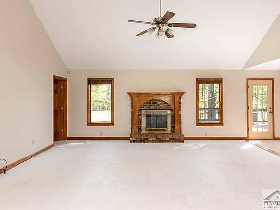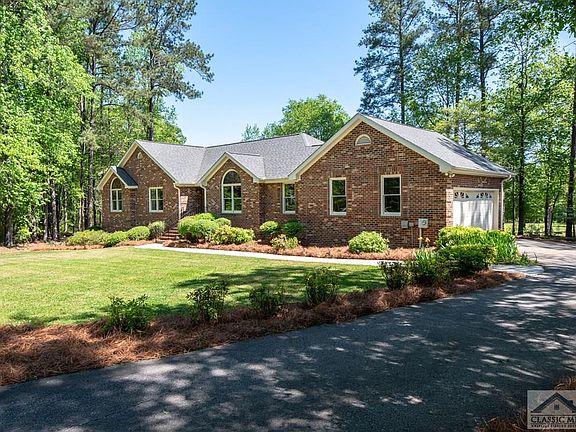 Just an all around great house! It's just a hop, skip, and jump from all the North Oconee Schools, including the new Dove Creek Elementary. Solidly built brick home on a cul de sac lot with a back yard overlooking a 40 acre farm beyond. Large home sitting over a finished basement with a shop and exterior access. Main floor boasts a large living room/dining room/great room with an imposing brick fireplace. Huge country kitchen with oak cabinets and eat-in table area with a tongue and groove wood stained tower ceiling above. All of this overlooks the backyard and back deck which is decked with Trex decking and is accessible from the kitchen. Huge laundry room off kitchen. Large 2-car garage accessible at the kitchen as well. On the opposite side are three bedrooms with one being a spacious owner's suite with a large private bath. Another hall bath serves the other two spacious and bright bedrooms. Basement has a very large, two room rec area that is stubbed for plumbing to create a wet bar. One full bath and another room in the basement serves as a fourth unofficial bedroom. Large L-shaped workshop with double doors also on this level. Basement has a large storage room as well! This home has been completely prepped for new flooring on the main (subfloors exposed and painted already), and we already have an estimate for wood flooring. Buyer can choose the style of wood flooring or carpet as part of this transaction, if they choose. Easy to show and ready to go!