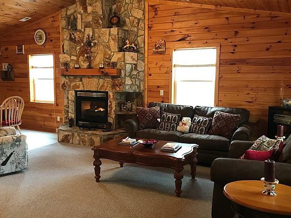 The mountains are calling! Sit back and relax in this low maintenance, custom built 3bed/2bath ranch style home. Sits on a gentle knoll surrounded by over 9 acres of woods that backs up to forest service land. And, there is at least one spring on the property! Home has nice great room. Island with breakfast bar, several pocket doors, jacuzzi tub in master bath, all one-level living, hall bath opens to hallway & the laundry room, wood vaulted ceilings, and custom stone gas log fireplace for those chilly mountain nights. Concrete board siding for low maintenance! Unrestricted land, so do what you want. Paved road frontage. Some furnishings negotiable.