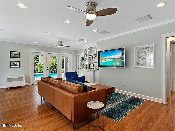 Light-and-bright saltwater pool home on the desirable San Marco Duck Pond! This inviting home features formal living room, spacious family room, separate den/office, hardwood floors throughout, and a flow that is ideal for entertaining. Private second-floor master suite includes large bedroom with spacious sitting area plus separate office/den/flex space (with extensive built-ins), impressive bathroom with oversized walk-in shower and separate pedestal tub and enlarged closet with custom shelving, and private screened balcony overlooking the backyard and Duck Pond. Tastefully-remodeled kitchen with quartz ctrs, stainless-steel appl, gas range, sep. cooking and prep sinks. Enjoy the large backyard oasis in the pool, by the fire pit or swing under the pergola, or relax along side the pond!