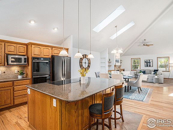 Located in desirable, Berthoud Common Neighborhood. This no HOA; no metro district home boasts 4,076 sq. ft. This stunning open floor plan seamlessly combines classic charm with contemporary elegance with the kitchen, primary bedroom, living room, laundry room, sunroom, and guest bath all on the main floor. The kitchen is a chef's delight featuring modern appliances, massive granite countertops, double oven, and plenty of hard wood cabinets to store all your culinary tools. The primary suite is complete with a walk-in closet, 5-piece luxury ensuite, soaking tub bathed in tile and granite. Every detail of this home has been meticulously curated, from the fixtures and hardware to the faucets and ceiling fans- selected for their quality and modern aesthetic. Lovely open floor plan bathed in natural light. This 3 bedroom, 3 bathroom home has additional build out in the partially finished, expansive 1,637 square foot basement. The backyard has an enclosed fenced. Fresh exterior paint in 2024. Private and quiet neighborhood with kind neighbors.