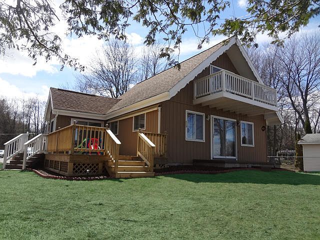 Charming chalet that has been well maintained. Newer kitchen and mechanicals including, furnace, water softener, central air, electrical panel and wiring. New stone shore line 2011. Crawl space insulated & new membrane installed 2013. New deck and exterior stain 2014. Good depth of water for any boat. Come have fun all the work is done!!
