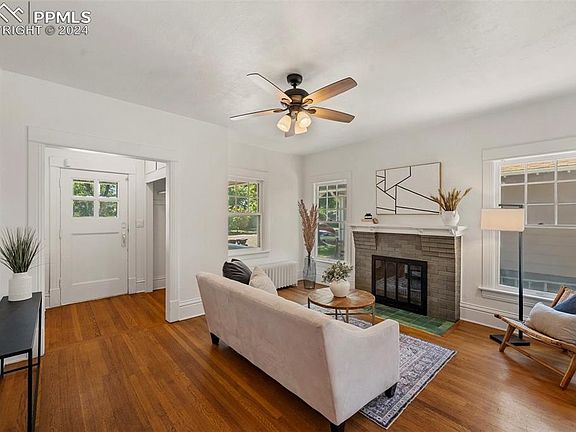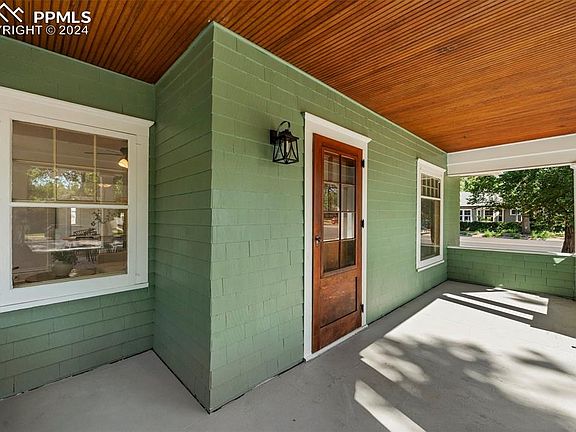 with a new fully renovated bathroom, finished basement area & new boiler tank! Discover the charm of this exquisite downtown bungalow, where classic elegance meets modern updates. Step inside to find beautifully refinished hardwood floors, soaring high ceilings, and an abundance of natural light throughout the home. The gourmet kitchen is a chef's dream, featuring custom cabinetry, brand-new countertops, and stainless steel appliances. The dining room boasts an incredible leaded glass built-in, while the living room is highlighted by an original "Van Briggle Pottery" tile fireplace, adding a touch of historic character. Recent upgrades include fresh interior and exterior paint, along with meticulously enhanced landscaping that adds to the home's curb appeal. Relax and unwind on the spacious covered front porch, perfect for enjoying your morning coffee or evening sunsets. The semi-finished basement offers additional space for storage, hobbies, or a potential recreation area. This home is truly a must-see!