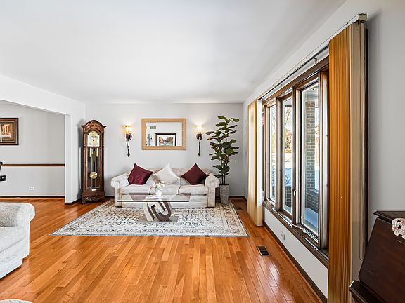 Classic Colonial home offers 4 bedrooms, 4.5 baths, and just under 2,800 sq ft of well-planned living space designed for comfort and functionality, located in one of Addison's finest communities, Farmwood Estates. A charming front porch welcomes you into a bright foyer that opens to a spacious living room and a separate, large dining room. The kitchen features rich wood cabinetry, granite countertops, newer appliances including a gas cooktop and double oven, and a breakfast area that leads to a sun-filled sunroom with skylight and patio access, ideal for everyday living and entertaining. The family room offers a cathedral ceiling with walk-out access to the backyard, while hardwood floors span the main level, complemented by main-floor laundry and convenient garage access off the kitchen. The upper level includes four bedrooms and three full bathrooms, highlighted by a private primary ensuite with its own balcony, along with new LVP flooring throughout. The finished lower level provides excellent recreational space, includes an updated bathroom, new LVP flooring, and flexibility to add an additional bedroom. Professionally maintained, fenced backyard with gazebo is perfect for outdoor gatherings, all set within a vibrant location close to restaurants, shopping, schools, parks, and expressways.