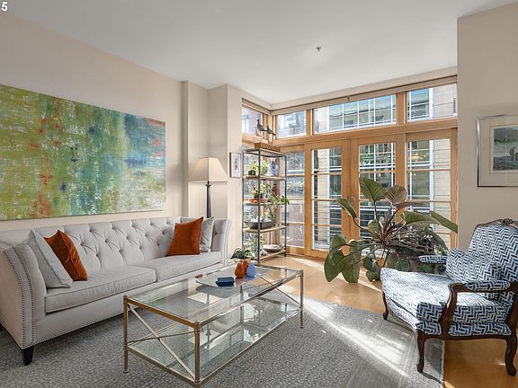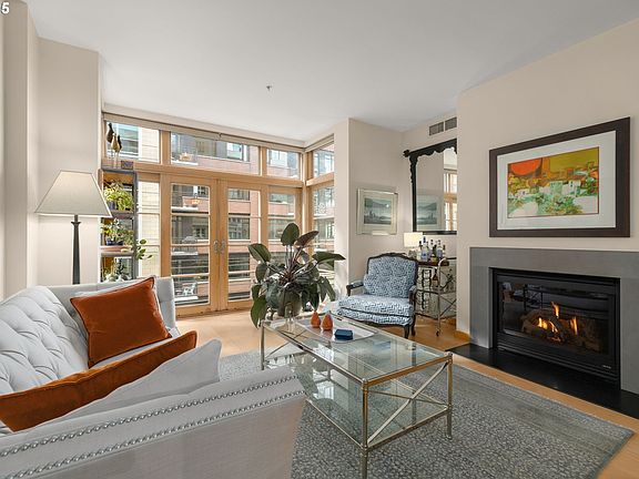 Discover an exceptional opportunity to reside in the North Pearl District, where residential luxury meets urban convenience. Stylish and adaptable, the Bridgeport Condominiums seamlessly blends open-concept living with thoughtfully designed private spaces providing a top notch floor plan. Featuring a welcoming open layout that unites the kitchen, dining, and living spaces, the home lives large. Upgrades include marble kitchen counters, top of the line appliances, custom builtins and designer lighting. Cozy up by the fireplace during cooler months, or open the Juliet balcony doors to invite the world in. This home offers two spacious bedrooms and two full bathrooms, including a serene primary suite with a walk-in closet with closet system and an ensuite bath with walk-in shower for added comfort and privacy. Additional perks include a secure deeded indoor parking space and a storage unit. Comprising two mid-rise buildings joined by a beautifully landscaped courtyard, Bridgeport provides a tranquil oasis in the heart of the city. Just steps away, enjoy the serene Tanner Springs Park with its lush wetland design, or explore The Fields Park and Jamison Square, offering everything from a dog park to playgrounds and peaceful fountains. Grocery, services and well regarded eateries within blocks.