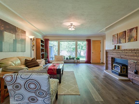 Timeless charm, modern appeal! Large windows in spacious living room overlook private fenced backyard. Expansive kitchen boasts a real wood-fire pizza oven. South wing readily arranged for dual living potential, with its own private kitchenette, bathroom, two bedrooms. AC will keep you cool & comfortable all summer long, while the gas fireplace provides a cozy warm ambiance when the weather shifts. Plenty of parking tucked discreetly at rear of home. Rare opportunity for size, location, & versatility!