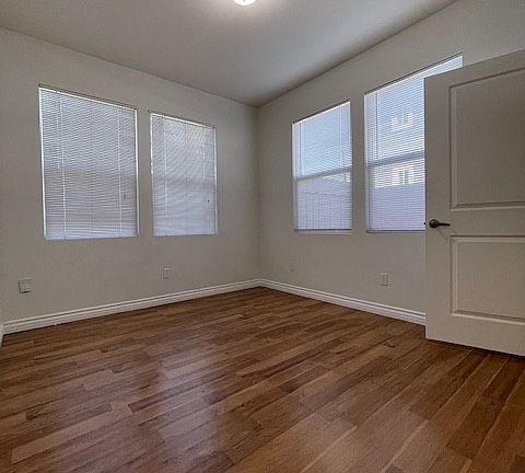 Hard to find new apartment complex in a very convenient location. Condo/Townhouse style living, 2-car ATTACHED garage (400 sqft) with auto opener. High-efficiency AC and heating, Tankless water heater, 9-ft. high ceiling, crown molding, porcelain tile, and Laminate wood flooring. Large private patio (370 sqft), fully equipped kitchen, washer/dryer hookup, private EV charging in garage, alarm system...many amenities. Beautiful Unit. Minimum 1-year lease, month to month after. The owner pays for water, trash, and gardening. Tenants pay their own utilities: gas, electricity, phone & internet.