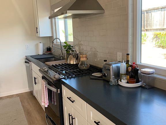 Quiet, light and bright newly remodeled back unit of a duplex. 2 bedrooms, beautiful kitchen with all new appliances including dishwasher. Hookups for washer/dryer. Carport, storage, large private yard. Willing to rent furnished to the perfect tenant and adjusted price. Available November 15 Video tour available on request. Absolutely no smoking, no pets (non-negotiable), owner pays sewer and gardener. Tenant is asked to water the garden weekly. 1-year lease. Would consider renting furnished to the absolute perfect tenant at an increased rent.