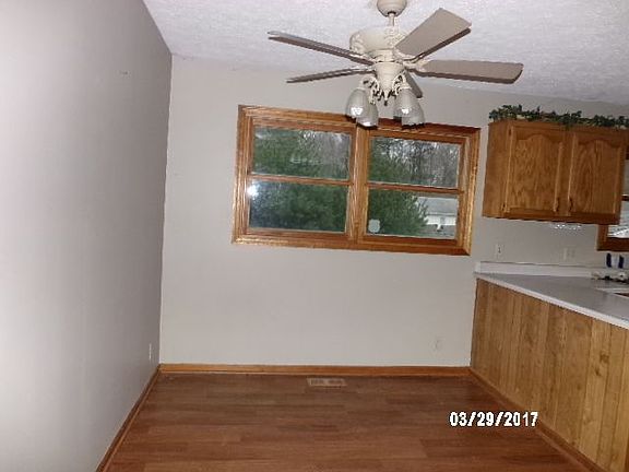 Cute and cozy! This 2 story home features 3 bedrooms and 2 baths, an attached garage, and a fenced yard. Also has an outbuilding for mowers, etc. Concrete driveway. Close to fairgrounds and just a short trip to shops, restaurants, etc.
