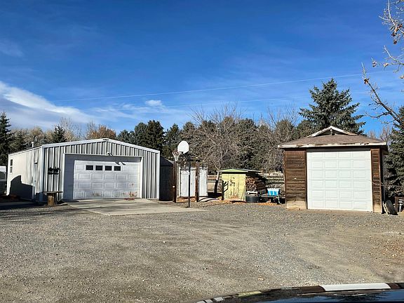Welcome to your dream hobby farm! This charming 2.07-acre irrigated ranchette offers the perfect blend of rural tranquility and modern comfort, ideal for horse or cattle enthusiasts. Corrals provide space for your animals, complemented by a 165 sqft shed and a 165 sf lean-to and tack shed, ensuring they are well-cared for year-round. A spacious 792 sqft steel framed, HEATED, metal shop-garage, spacious enough for extra equipment storage, and special projects. A versatile 360 sqft detached single garage doubles as a shed or equipment storage area, complete with abundant shelving to keep your tools organized. The 1,749 sq ft home boasts a spacious and open floor plan, featuring 3 bedrooms and 2 full bathrooms, providing ample space for living. Enjoy peace of mind with a new roof installed approximately 2-3 years ago, ensuring durability and protection for years to come. Cultivate your green thumb with a recently planted raspberry patch and designated garden area, perfect for growing your favorite fruits and vegetables. Property features a large yard adorned with mature trees, offering shade and enhancing the serene country ambiance. The property is fenced, providing a safe environment for your animals to roam freely. Nestled in a peaceful country setting, this delightful property combines functional "farming" facilities with a comfortable home, creating an idyllic retreat for those seeking a rural lifestyle.