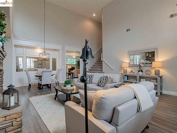 This home is beautiful, spacious, and freshly renovated. It features 4 beds and 3 bath with a full bed and full bath downstairs. New flooring throughout, fresh paint in the interior, kitchen has been newly renovated with freshly painted cabinets. The high vaulted ceilings create an open and spacious feel. Great Backyard with beautiful redwood trees surrounding the perimeter with a gorgeous fountain pond creating a very peaceful getaway. This home is a must see! Don't miss out!