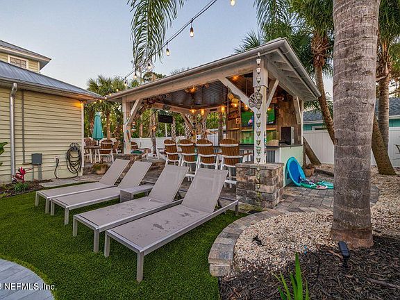 Fabulous beach home with an over $200,000 backyard oasis complete with saltwater heated pool, outdoor pavilion with a fully-equipped kitchen including propane BBQ and 2-burner stove, smoker, ice maker, beverage cooler, combo temp wine chiller, two tap CO2 kegerator, commercial drink center, and USB power ports and TV. Rare 1.5 lots and only 4 blocks to Sunshine park. This property is currently an operating vacation rental. All furnishings and rental supplies are included. Financials will be provided to qualified buyers.