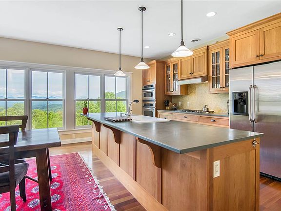 If you are in search of improving your life, you need to see this private, pristine, open concept, 4 bed, 4 bath home with top of the world views of VT's highest peak. Located on 10 beautifully wooded acres on Chase’s Mountain in Waterbury Center, Vermont, the 2019 Healthiest State. Enjoy drinking your morning coffee or entertaining your guests on the large wrap around deck overlooking Mt Mansfield, the Waterbury Reservoir, the Trapp Family Lodge, and seasonal Camels Hump views. The kitchen and dining room boast a complete wall of windows allowing natural light to flood in and tranquil views while you cook or entertain. Custom cherry cabinets, Hubbarton Forge lighting, Kohler faucets, and VT slate counter tops add an elegant touch. The main level offers beautiful Brazilian cherry floors, a gas fireplace, and radiant heat. The master suite provides spacious comfort with vaulted ceilings, exposed beams, custom cherry cabinets with cedar backing and pull out slack/pant hangers and a beautiful 2” thick walnut slab bench. Large master bath includes deep soaking tub, dual vanity and slate tile floors. The laundry room features new custom closets. The bright walk out basement offers 9-foot ceilings, a mudroom off the heated garage, large family room and storage/utility area complete with tire storage. A new whole home generator was installed with an automated transfer switch and is tied directly into the underground fuel tank. Quick commute to all conveniences!