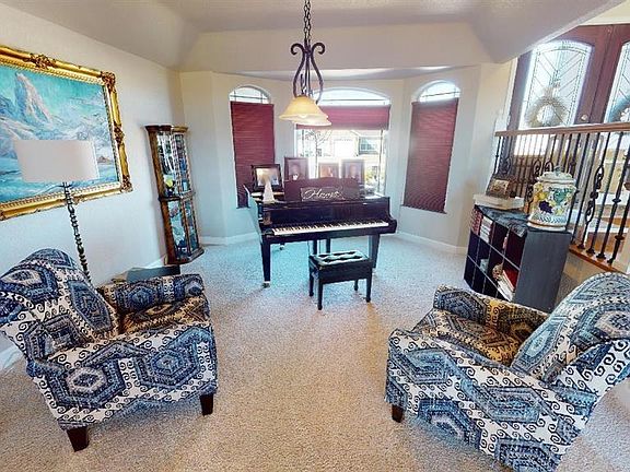 Extraordinary custom home that is one of a kind. Located in a quiet cul-de-sac and sitting on a large lot, the home has no shortage of amenities. Featuring a formal dining or seating area, living room with large windows looking out to the back yard, great room with vaulted ceilings and decorative wood stove, multiple levels that create separation from the living, office and bedroom spaces. Large primary suite on the 1st floor has vaulted ceilings, seating area with gas fireplace, double walk-in closets, granite counters, double sinks, soak tub, over-sized tiled shower with additional body jets, water closet with toilet and bidet. Custom kitchen with maple cabinets, granite counters, stainless steel appliances, kitchen island w/ seating, walk-in pantry, in-kitchen dining or formal dining. Over-sized 3 car attached garage, mature landscaping, sprinkler system, dog run, covered patio with built-in grill, fire pit and hot tub - all with Mt Blanca and Rio Grande River corridor views. Bonus building has an area for yard tools, heated workout room and storage space above. Qualified Buyers only for showings. Call today for more details.