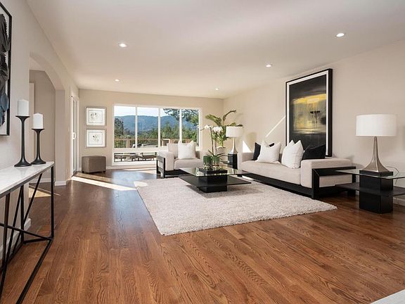 Expansive peaceful views will mesmerize you at this spacious home! At 2,540 sq ft, all the rooms are generously sized providing a relaxing feeling of openness. The dining room & living room feature newly installed hardwood floor, a freshly refaced gas fireplace, recessed lights, & large windows & sliders that open out to an inviting deck. The kitchen provides lots of counter space & has granite counters, a new cooktop, tray ceilings with indirect lighting, a pantry, & an additional space for in-kitchen dining. Upstairs there are 3 bedrooms. The ensuite enjoys stunning views out to the west & a slider out to a balcony. The bathroom has double sinks & a stall shower with built-in bench. Another bedroom also looks out to the view & has a slider out to the balcony. The other bedroom has high ceilings. Outlet in garage for EV charging. The community has a pool, hot tub & green space. Excellent access to highway 280 & just 2.5 miles to the amenities of downtown San Carlos!