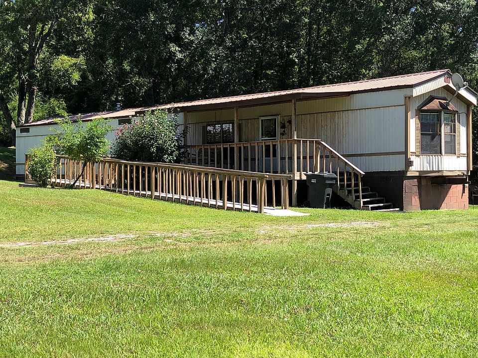 Beautiful property! Very large corner lot! 14x80 Buccaneer, 3 bd/2 bth, New Plumbing, New Hot Water Heater, New A/C Motor, Large Covered Front Porch, Home needs minor repairs. Land Details: 1.87 Acres, (2) Metal Carports, (4) Outdoor Buildings 1 is a work shop, Storm Shelter, Garden Spot, Dog Pens, Fish Cleaning Area, Deer Gambrel. Landscape includes Fig Tree, Muscadine Vine, Bradford Pear and Flowering Trees. Home is sold with contents. Contents: New Luxury-Full Recline Lift Chair, Furniture, Double Door Refrigerator, Washer/Dryer, Like New Gas Range, Cookware, Home Decor. Too much to list! Hunter and Fisher Paradise! Boat also available for sale! Property, Home and Contents are Sold As Is. Shown by Appt Only. A great investment! A must see!