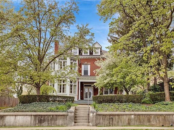 So Special! Amazing 3 story home with 6BR/3.5BA set upon level double lot! Spacious & inviting covered front porch leads to lovely 1882 Victorian home. Long entry hall leads to large living room, paneled dining room, and den/home office. Bonus sitting rm off of living room. Center island kitchen with double ovens and eat-in space with adjacent mudroom. Beautiful details steeped in original charm. Generous amounts of living space, built-in bookcases, wood floors, crown molding, mantles & decorative fireplaces. 2nd floor grand owner's suite has bonus sun rm, closets & bath + 2 addt'l bedrms & new hall bath. 2nd fl laundry. 3 more BRs on 3rd floor + extra space for an office/workout room. Plenty of basement storage. Great outside patio beautifully landscaped with massive, level yard. Power-gated driveway leads to 2-car detached garage & bonus room above! Great shopping & restaurants a short walk away in Shadyside & Sq Hill. So close to Pitt, CMU, and UPMC hospitals + downtown