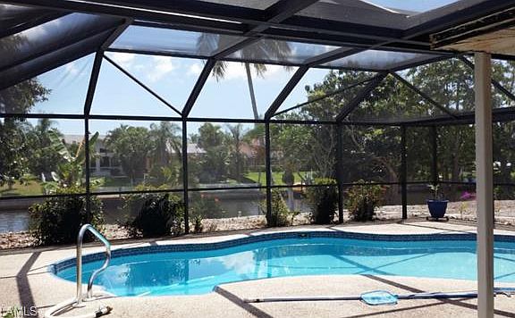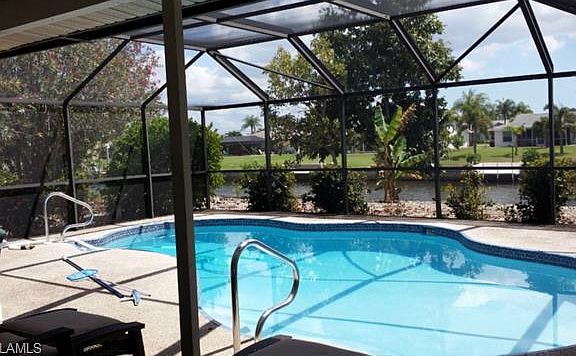 Triple Lot - Gulf Access Pool Home on 120 Foot Canal and 1 Bridge to the River. Split Floor Plan - 3 Bed, 2 Bath, Breakfast Bar, Dining Room, Living Room, Family Room. Large Lanai with pass thru from the Kitchen and a built-in High Top Table on Lanai. Southern Exposure with Wonderful Water View. All windows have been replaced with Hurricane rated Impact windows and all Doors/Sliders have Hurricane Panels. Separate Laundry Room with Washer and Dryer Included.