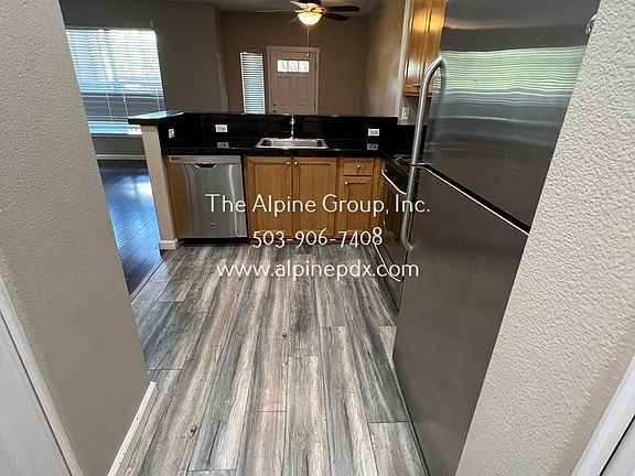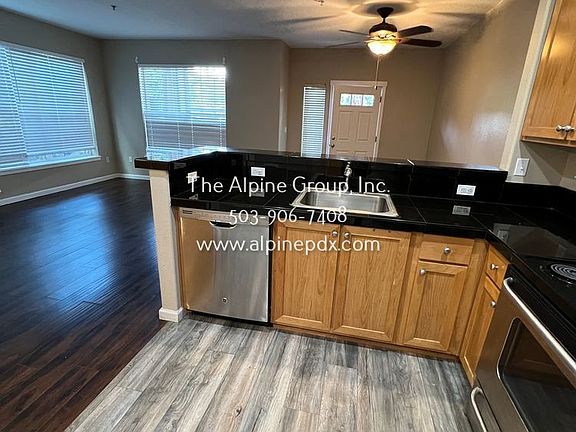 This is a first-floor one-bedroom condo at Elmonica Station. Beautiful hardwood floors throughout. Walk into a spacious living room/dining room entry with a ceiling fan. Eating bar in the kitchen! The kitchen includes a stainless steel fridge, electric stove, built-in microwave, and dishwasher! Beautiful black countertops. Nice sized bedroom with ceiling fan and window. Washer and dryer are included! (W/D are 'as-is' and will not be repaired/replaced). One assigned parking space and overflow parking are allowed in designated spots in the Tri-met lot. Water, sewer, and trash are included with your rent! It is conveniently located close to Costco, Nike, MAX, and the Tanasbourne area! Unit is a two-minute walk from the MAX Blue Line at the Elmonica/SW 170th Ave MAX Station stop. This location is in the Five Oaks neighborhood in Beaverton. Nearby parks include Steele Park, Merlo Station Athletic Fields, and Waterhouse South Powerline Park. TENANT TO PAY: Electric - PGE Gas - N/A Water, Sewer, Trash - included w/rent! RENTERS INSURANCE Proof of renter's insurance is required before move-in and is required to be maintained throughout tenancy. PETS There are a max of two pets. All pets must be at least one year old, spayed/neutered, and current on all shots and immunizations. Please submit proof from your veterinarian with all current shots and immunizations. Pet rent is $25 per pet, per month. A pet picture is required. Breed restrictions do apply. Management reserves the right to deny any animal, at any time, for reasons including aggression, behavior issues, etc. An additional deposit of $500 per pet is required. LANDSCAPING/YARD MAINTENANCE HOA maintains all landscaping. APPLICATION PROCESSING All complete applications are processed in the order received. If you are in a back-up position, your application fee will be refunded if another application is approved before yours. Fees are non-refundable once we start screening your application. INCOME REQUIREMENTS Gross income should be 3.0 times the rent View our Rental Criteria on our website or contact our office. SMOKING All of our homes are smoke-free. Smoking is only allowed a minimum of ten feet away from the property. MARIJUANA This property will not allow the growing or smoking of marijuana. This unit does not qualify as a Type A Accessible Dwelling Unit pursuant to the Oregon Structural Building Code and ICC A117.1. ALL INFORMATION IS DEEMED RELIABLE BUT NOT GUARANTEED Smoking allowed:No