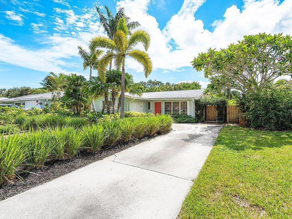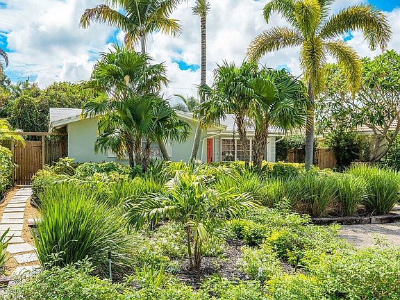 Professionally landscaped two bedroom bungalow on a gorgeous street in Palm Beach Farms! Beautifully renovated bathrooms, large open kitchen with wood cabinets, granite countertops and tumbled stone backsplash. Features include: crown molding, tall baseboards, shiplap, terrazzo floors and a large Florida room. Interior laundry room. All A-rated schools including Addison Mizner Elementary. Wait until you see the oversized, authentic tiki in the lush backyard that is wired for the big screen. Room for a pool. Southern exposure out back with plenty of shady spots to relax. Bike ride to the beach and downtown in 15 minutes! Hillsboro El Rio and Pine Breeze Parks both within walking distance.