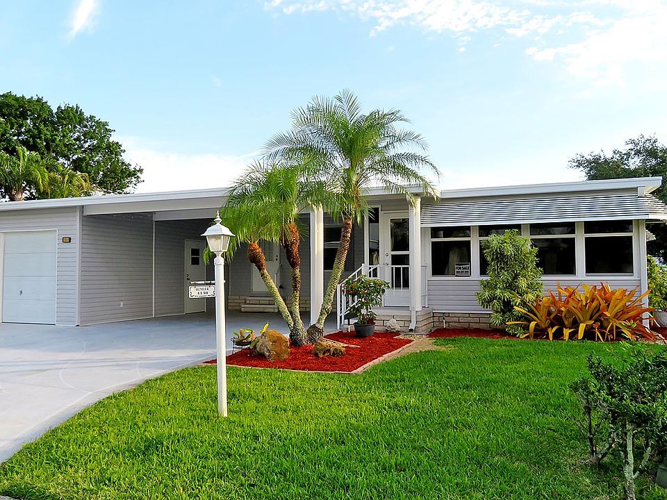 BY APPOINTMENT ONLY. This great TWO Bedroom TWO Bath home has a wonderful split floor plan. Nice window and door trim, painted cabinets, updated flooring (bamboo and plush carpeting). 2021 HVAC. Excellent curb appeal. Other features include: walk-in closets in both bedrooms; 12' X 18' Front Florida Room situated on a spacious lot which offers opportunities to greet neighbors; 10' X 12' Golf Cart Shed with door opener to store your stuff and a 19' X 20' Carport that gives 2 cars plenty of space out of the sun. Don't miss this great opportunity.