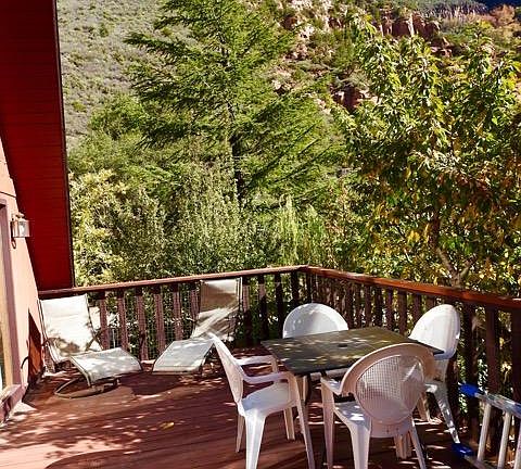 This rustic cabin is situated in the heart of Oak Creek Canyon. Enjoy the spacious and breathtaking views of the Canyon. It also comes with it 3 decks and an orchard. 3 month