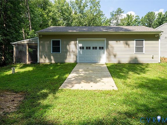 Significant Price IMPROVEMENT !! Welcome to this remarkable ~ Unique Home in Louisa County !! Offering a fabulous custom built 3 Bedroom, 2 Full Bath Ranch located on 5 Acres ! Not only does it offer a gorgeous flowing open floor plan with craftsman features throughout, it also provides you with enormous Garage Space. 2 Car ATTACHED Garage PLUS a Custom Built 3 Car DETACHED Garage with a garage door opening also in the rear ! The detached garage space is finished a provides multiple options. This home is only 6 years Young and includes a Huge Living Room w/Gas Fireplace (with Granite Hearth) open to a fantastic kitchen including white cabinets w/granite countertops, stainless steel appliances (Refrigerator, Flat Top Stove, Microwave, & Dishwasher), recessed lighting, and open to a spacious dining area. The Primary Bedroom is on the back of the house and incudes a walk-in closet, ceiling fan, and large Full Bath with a Double Vanity and Oversized Tiled Shower. The remaining 2 bedrooms are spacious, provide ceiling fans and are convenient to the adorable 2nd Full Bath (hallway). The flooring is so pretty with the hardwood floors, tile flooring in laundry room and bathrooms, and plush carpeting in the bedrooms.
