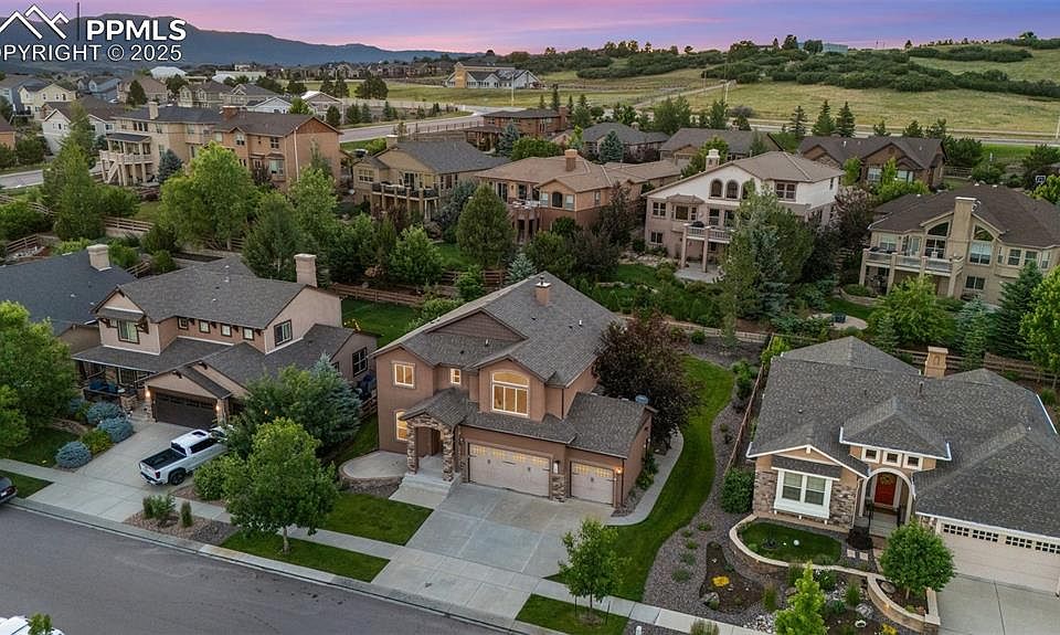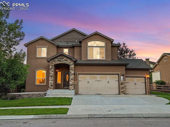 Affordable and Fabulous in Flying Horse! This move-in-ready home provides amazing curb appeal, featuring a blend of stone and stucco, a grand arched entryway, and an oversized 3-car garage. Located in the highly sought-after Flying Horse community and zoned for top-rated district 20 Discovery Canyon Campus k-12 schools! Inside, you’re greeted by a warm, inviting foyer with natural wood floors that flow throughout the main level. The home also features new carpet and fresh paint, giving it a clean, modern look. A separate formal dining room is perfect for gatherings and is connected to the kitchen by a handy butler’s pantry for extra storage and serving space. The spacious living room features soaring ceilings, huge windows that let in tons of natural light, and a stunning stone fireplace with a modern wood mantle—perfect for relaxing or entertaining. The open floor plan flows into a chef’s kitchen with granite countertops, stylish two-tone cabinets, plenty of storage, and brand-new stainless steel appliances. There's also a cozy breakfast nook for casual meals. Upstairs, a versatile loft can be used as an office, playroom, or media space. The luxurious master suite features vaulted ceilings and a double-sided fireplace that also warms the spa-like 5-piece bathroom. Two spacious secondary bedrooms, a full bath and laundry roomcomplete the upper level. Downstairs, the finished basement includes a large family room with a wet bar, two additional bedrooms, and a full bathroom—ideal for guests or multi-generational living. Outside, the backyard offers mature landscaping, oversized pergola that is perfect space to relax or entertain and is prewired for a future hot tub. Enjoy all the amenities Flying Horse has to offer, including a pool, clubhouse, parks, scenic trails, and easy access to shopping and dining. Don’t miss your chance to own this exceptional home in one of Colorado Springs' most desirable neighborhoods!