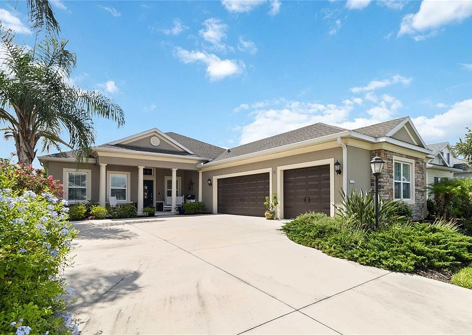 Welcome to this lovely open-concept 3BR/2BA home with den in Rivers Reach, one of the most sought after neighborhoods in Parrish, built by Neal Communities. This home is located on a private lakefront lot with a huge fully fenced backyard, pet friendly and comes with an oversized side entry 3-car garage, and a large driveway with sidewalks and a fantastic streetscape. This spectacular property offers a beautifully landscaped lot, with palms, oaks, holly and blooming magnolia trees, creating a serene and inviting atmosphere. The elevation and entry are sure to impress, featuring an elegant stone front, decorative columns and a charming porch, perfect for relaxing in the evenings and watching the sunset. Some of the fantastic highlights include hurricane shutters, rain gutters, tray ceilings in the gathering room & primary bedroom, extensive recessed lighting, fans in all rooms, plantation shutters on front windows, and triple pane sliders that pocket fully creating a wonderful indoor/outdoor space with a huge screened lanai overlooking the yard with plenty of room for a pool, swing set, firepit & more. The heart of the home is the island kitchen, perfect for entertaining or family get togethers with plenty of storage space, large dinette area, wood cabinetry w/soft close drawers, granite counters, modern backsplash, under cabinet & pendant lighting, stainless appliances, upgraded deep well sink, pantry and whole home water filtration system. The primary bedroom is split from the guest wing and offers his/her walk-in closets, and ample space for a King bed set, with the primary bath offering double sinks, large glass enclosed shower and separate private water closet. Rivers Reach has a low HOA fee, but offers some great amenities including a gated entrance, large resort style community pool & spa, lounging areas, outdoor kitchen, fitness room, volleyball court, dog park, walking trails and canoe/kayak storage & launch on the Upper Manatee River. The location is very central, offering easy access to the bustling Parrish commercial district & Ellenton Outlets, as well as all the amenities of Lakewood Ranch, new commercial district on SR64, University Town Center...and of course all the beautiful beaches our area is known for. This home exudes curb appeal and is ready to welcome you and your family. Set up your private tour today and make this home your own.