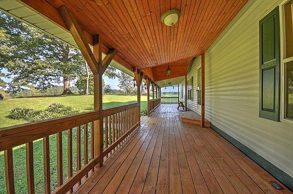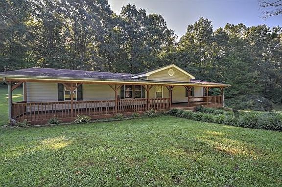 3/2 Doublewide on 5.71 private acres! This home features many upgrades including hardwood floors and ceramic tile, split bedroom design, stainless steel appliances, full length covered front porch and screened in back deck to enjoy the acreage and views. Back of lot is wooded and there are cleared areas for pasture and gardening. Mature trees in yard for lots of shade. Large detached 20X24 garage/workshop with tons of space and electricity (60amp). Underground electrical to home and garage.