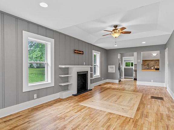 Experience timeless charm and modern comfort in this beautifully restored 1921 bungalow. Nestled on a spacious lot with mature trees, the property offers a peaceful, country-like setting. Step inside through the rear entry mudroom and laundry area into a brand-new kitchen featuring stainless steel appliances and warm wood countertops. Custom wood flooring flows throughout, adding character and quality rarely seen at this price point. The beautifully updated bathroom features a built-in makeup desk, offering both style and functionality. The partial basement provides ample storage and also serves as a reliable storm shelter. Recent updates include a durable metal roof, new gutters, vinyl siding, PEX plumbing, updated electrical panel and wiring, and R38 attic insulation. Don't miss your chance to own this thoughtfully renovated home that blends historic charm with exceptional craftsmanship.