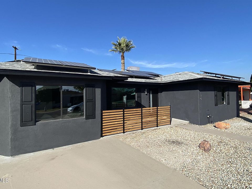 It doesn't get any better than this. A Completely remodeled in Melrose Manor Neighborhood and centrally located within walking distance of 5-star restaurants , coffee shops and many more. This is a 4 BR, 2 bath, split floorplan with new paint, new windows, wood flooring, baseboards, kitchen shakers, quartz countertop, backsplash, stainless steel appliances, lighting fixtures, French door, carpet and bathrooms. Backyard has a lush and great size green grass that has a private gate onto the canal, perfect for morning runs, walk or bike rides. The house also equipped with Solar panels that are 100% owned, no lease/loan to qualify, just enjoy the low or no electric bills!