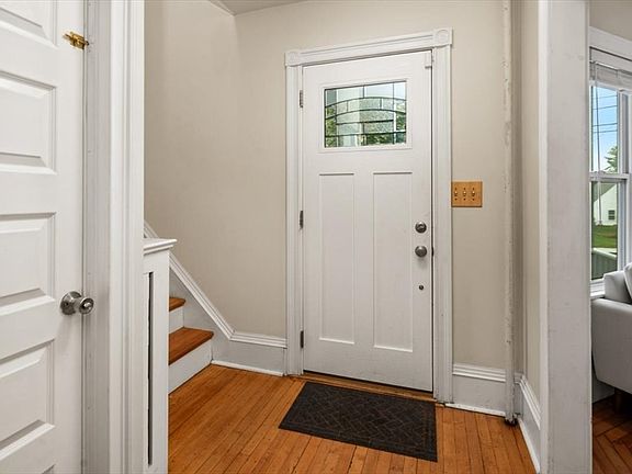This beautifully updated farmhouse is centrally located and is walking distance to Abington High School & athletic fields. It is a short drive to area restaurants, shops and the MBTA Commuter Rail. The first floor features a living room with pellet stove and ceiling fan, a cozy formal dining room, an updated kitchen with granite counters, maple cabinets and stainless appliances, a mudroom with wainscoting and updated half bath with laundry area. The second floor includes three bedrooms and an updated full bath. The full basement is unfinished and offers great storage space. Gas heating, hardwood floors, custom radiator covers, covered front porch, new rear deck, fenced in yard with wood shed and so much more. This adorable house is priced to sell and perfect for first time homebuyers or downsizers. Don't miss this one!