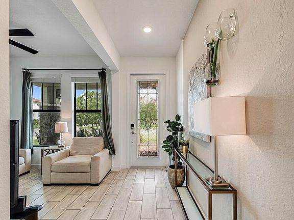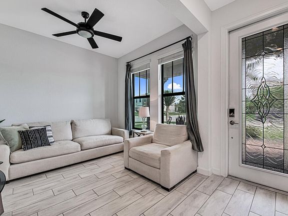 This charming 2-bedroom, 2-bathroom plus den single-story home offers a desirable split floorplan, providing privacy and comfort. Situated on a corner lot, the property features impact windows and doors throughout for added security and peace of mind. Step inside to an inviting, light-filled living space that seamlessly blends with the open-concept kitchen, making it ideal for entertaining. The kitchen boasts sleek quartz countertops, a spacious island, and stainless-steel appliances, perfect for both casual meals and gourmet cooking. The primary suite is a retreat in itself, featuring a luxurious bathroom with a stand-alone shower, double vanity, and walk-in closet. Outside, the fully fenced yard provides a private oasis with no rear neighbors, offering a tranquil space for relaxation or gatherings with friends and family and room for a pool. Located within walking distance to all of the community amenities, this home combines modern comfort with ultimate convenience. Be sure to check out the virtual tour for a 3D walkthrough experience.