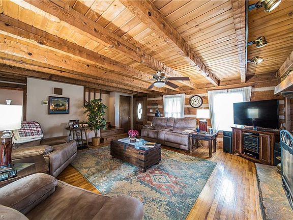 Secluded cape cod log cabin on over 35+/- acres. Over 3 acres of fenced in pasture. Granite counters & stainless appliances, stone fireplace in the living room, separate dining room, den is a great space to entertain, spacious bedrooms, loft area, side screened porch, screened deck, barn, stocked pond for your fishing dreams, new metal roof, full unfinished basement with fireplace ready for your personal touch, and acres of woods that have never been timbered for possible additional income