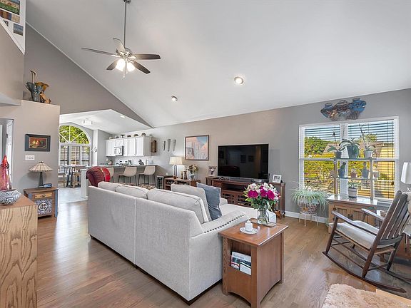 Welcome home to this beautiful 1.5 story home! As you enter this home you are greeted with a neutral décor, stunning refinished hardwood floors, and soaring vaulted ceilings. The kitchen has been updated featuring custom white cabinetry with crown molding, granite counter tops, breakfast bar, vaulted ceiling, plantation shutters, pantry & coffee bar area! The 2 story great room offers plenty of natural light, gas fireplace and access to the private patio complete with awning that backs to trees. The primary suite with walk in closet is located on the main floor of this home & features an adjoining luxury bath with walk in tiled shower & double sink vanity. Upstairs you will find a cute loft area as well as 2 spacious bedrooms and a 2nd updated full bath. Additional amenities include a half bath for guests, new furnace, newer water heater (2020) and all in a great location near grocery stores, highways & parks!
