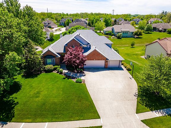 BOB BUESCHER CUSTOM BUILT HOME!! Gorgeous 4 BR two story with a finished basement! NEW ROOF IN 2022, HIGH EFFICIENT GEOTHERMAL... This home offers unique molding through-out, beautiful den off the foyer with hardwood floors, spacious formal dining room, large kitchen with custom cabinets, quartz countertops, center island, nook. 3/4 season room with new windows and slider (2021) 2 way fireplace leading into the great room with massive windows overlooking the .4 acre yard! master suite with sitting area, jetted tub, stand up shower and walk-in closet, 10x7 laundry area off the master, 3 large bedrooms on the upper level with 2 full baths and loft area, the walk-out lower level offers a full wet bar, office, possible 5th bedroom, nook, family area with fireplace, huge unfinished area for storage or could be additional finished space. 3 car garage (884 sqft) floored attic, wired for security, irrigation system. Updates include...furnace & kitchen fridge 2021, carpet in GR, house humidifier, LG W&D, Dishwasher, water heater, fp insert in bsmt 2022.